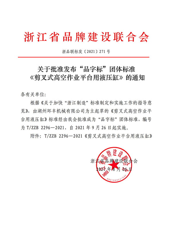 ข้อสังเกตเกี่ยวกับการอนุมัติการตีพิมพ์ของกลุ่ม“ Pinyibiao” มาตรฐาน“ กระบอกไฮดรอลิกสำหรับแพลตฟอร์มการทำงานทางอากาศแบบกรรไกร